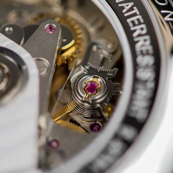 Mechanizm to ETA Valjoux 7750 - klasyczny, automatyczny chronograf o częstotliwości 28 800 A/h, znany z wysokiej niezawodności i świetnej pracy stopera nawet przy intensywnym użytkowaniu. Konstrukcja łożyskowana na 25 kamieniach minimalizuje tarcie i zużycie podzespołów, a system automatycznego naciągu zapewnia stabilne budowanie rezerwy podczas noszenia zegarka. Oferuje około 48 godzin rezerwy chodu, funkcję dokręcania koronką oraz układ wskazań DAY-DATE, co czyni go jednym z najbardziej uniwersalnych mechanizmów chronografu na rynku.