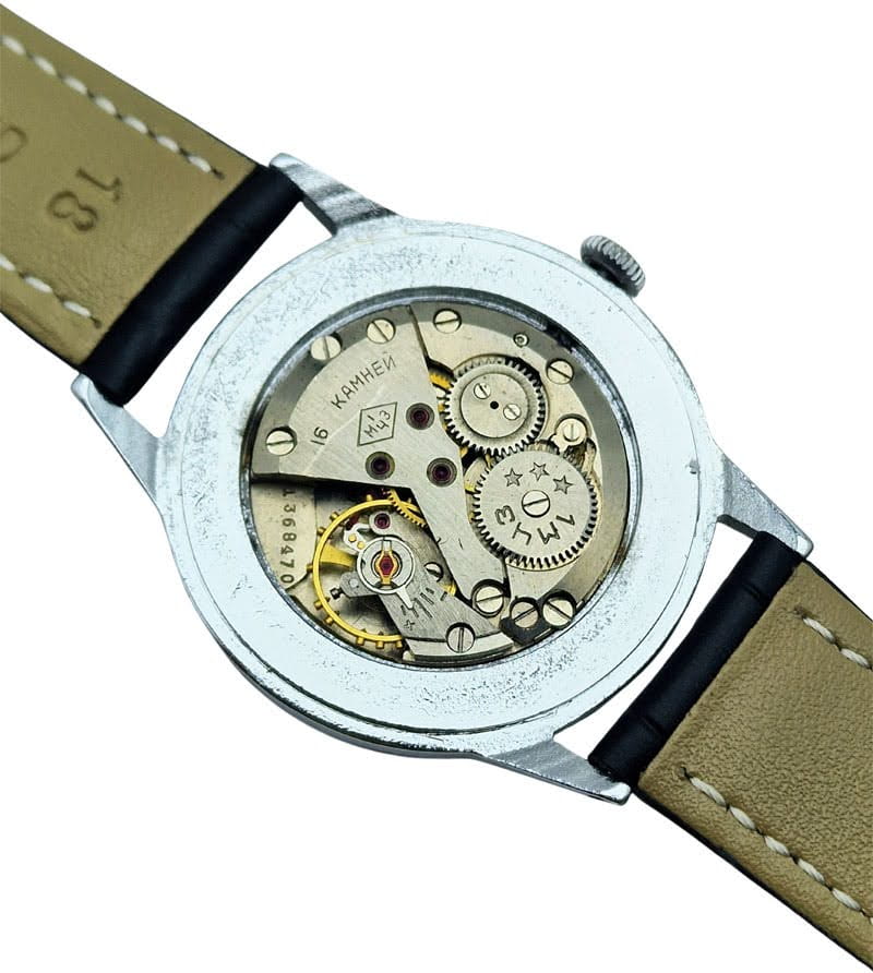 - Materiał: koperta chromowana, wykonana w klasycznej technologii stosowanej w polskich zegarkach tego okresu.