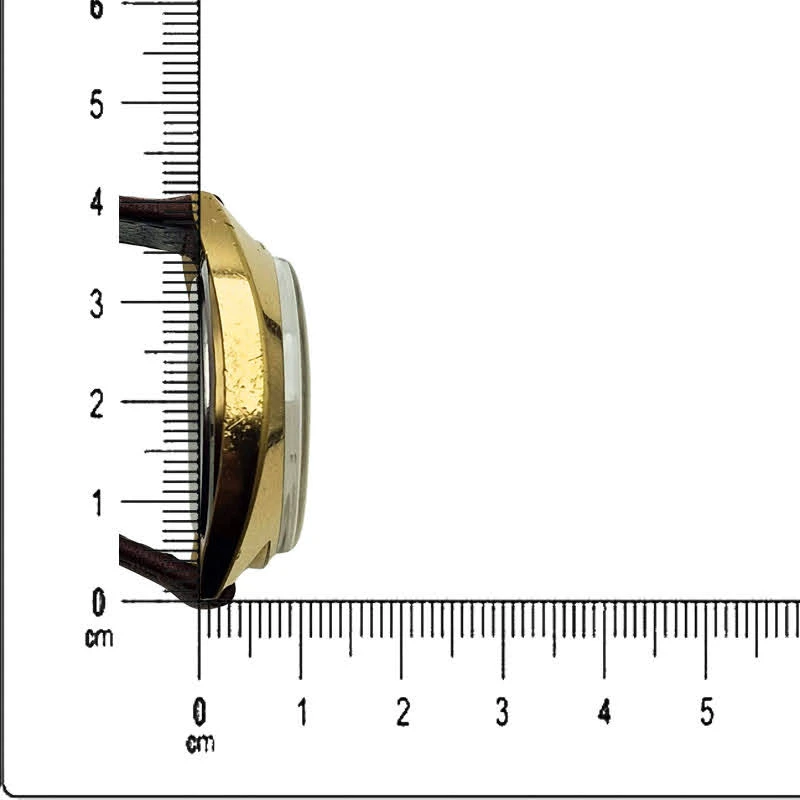 - Materiał: koperta bardzo grubo złocona, prezentująca głęboki, szlachetny połysk, typowy dla wyższej klasy zegarków z tamtych lat.