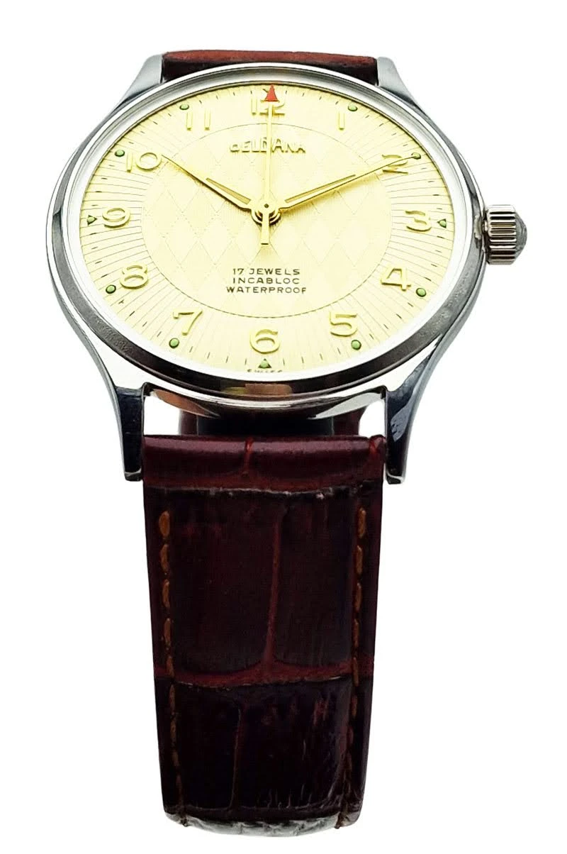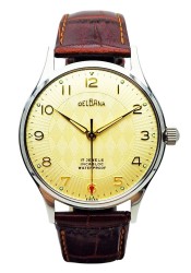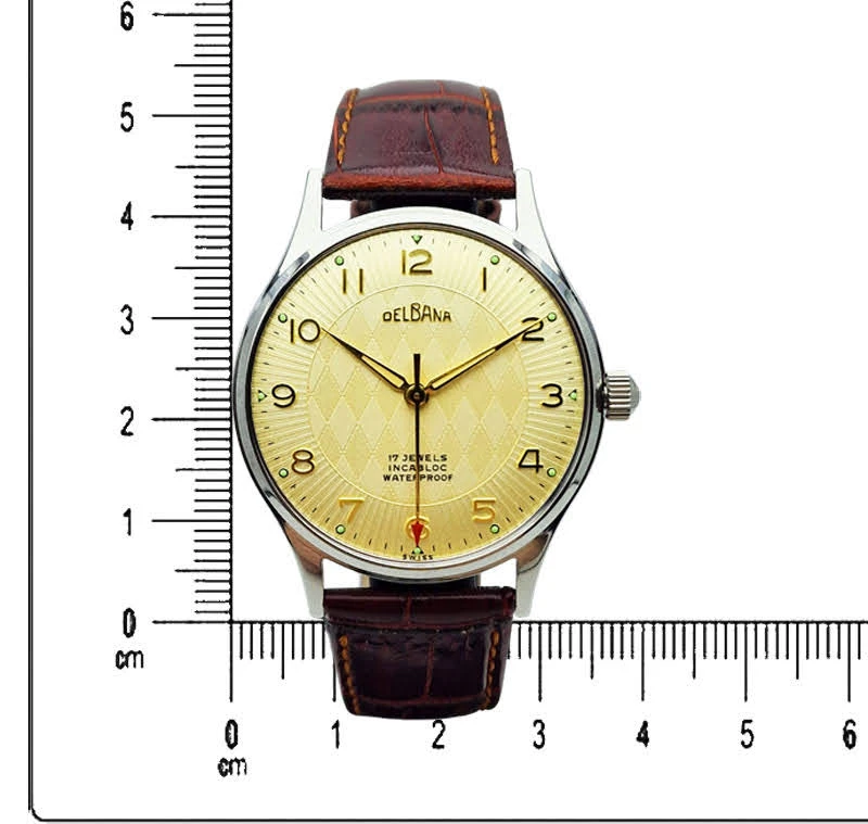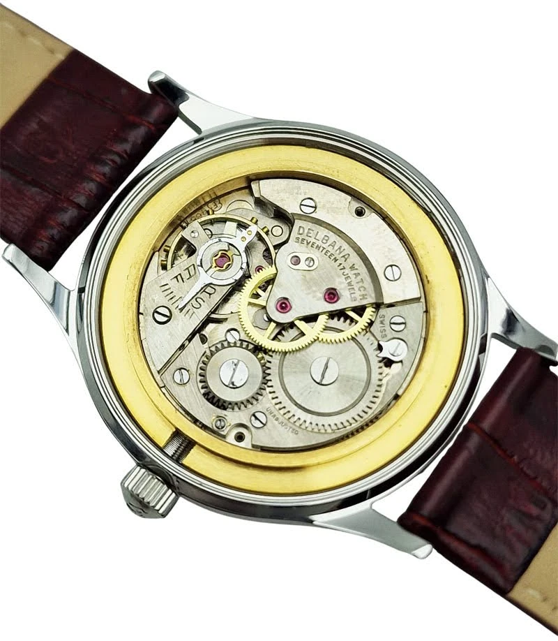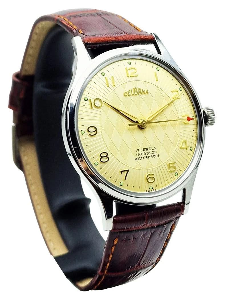Zegarek pochodzi ze Szwajcarii, kraju od ponad stu lat uznawanego za światowe centrum zegarmistrzostwa. Marka Delbana specjalizowała się w produkcji solidnych zegarków mechanicznych przeznaczonych do codziennego użytkowania, łącząc klasyczne wzornictwo z niezawodnymi mechanizmami szwajcarskich producentów. Prezentowany model reprezentuje elegancki styl zegarków z lat 50. i 60., charakterystyczny dla epoki, w której liczyła się czytelność, trwałość i ponadczasowa forma.