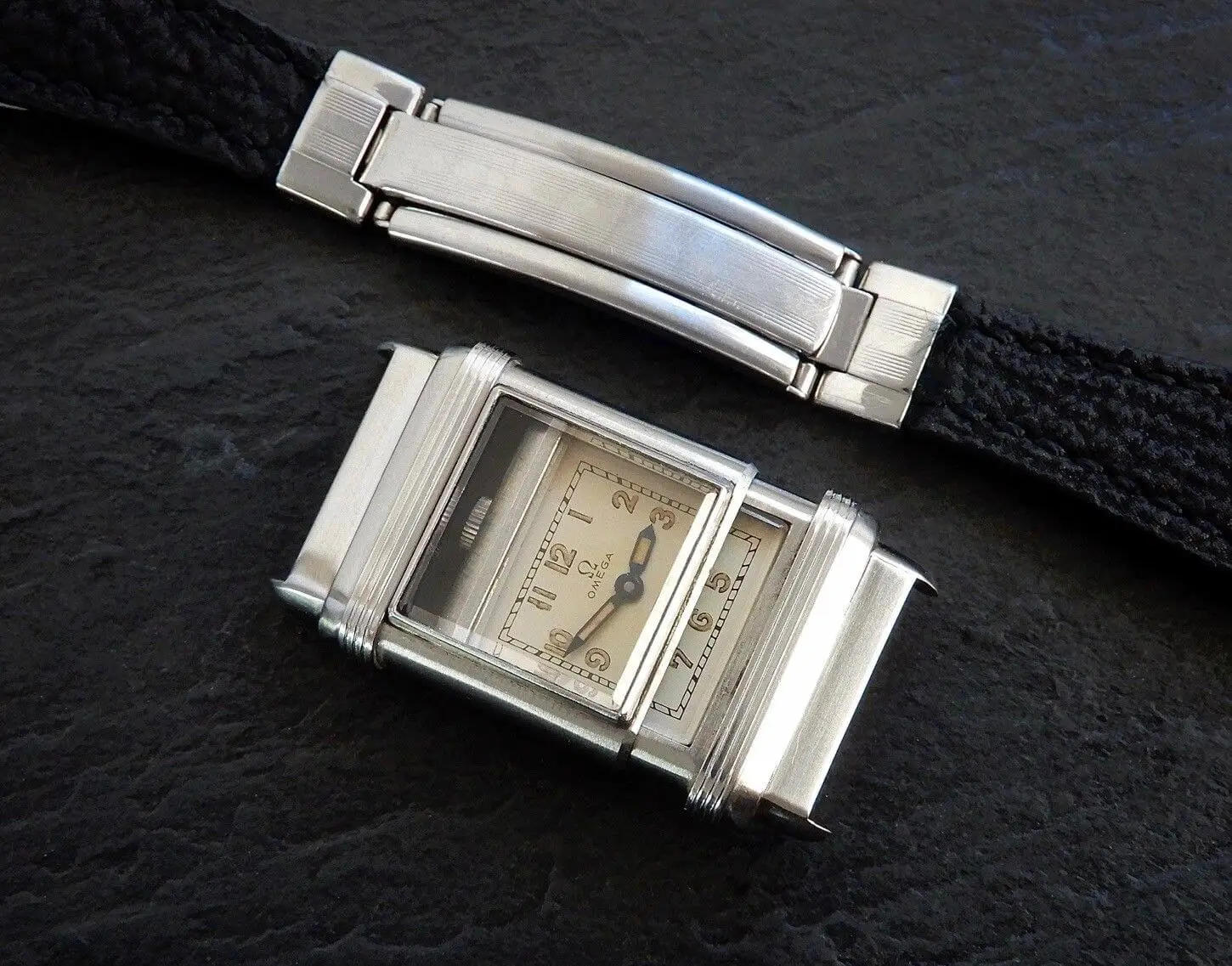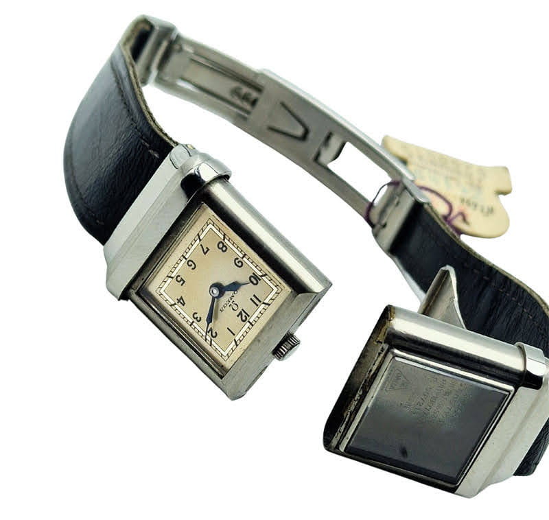 - Materiał: stal szlachetna Staybrite, odporna na korozję i typowa dla wysokiej klasy zegarków z lat 30. XX wieku.