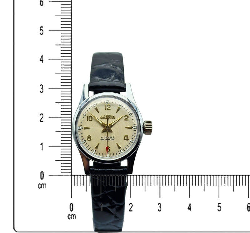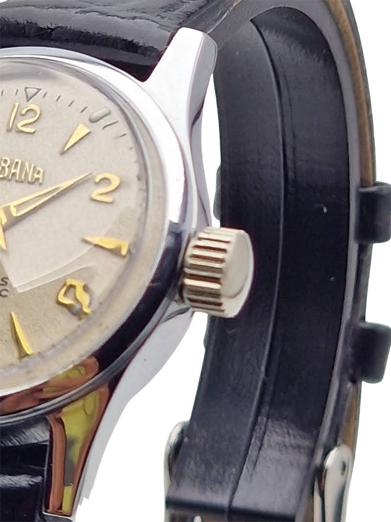 Prezentowany zegarek to subtelny, klasyczny model o lekkiej formie, który doskonale odnajduje się na kobiecym nadgarstku, zachowując jednocześnie charakter prawdziwego szwajcarskiego czasomierza. Dla miłośników zegarków stanowi interesujący przykład produkcji powojennej, wyposażony w mechanizm ETA 1312 z systemem Incabloc i czytelną, funkcjonalną tarczę. Po przeglądzie zegarmistrzowskim pozostaje w pełni użytkowy, a jego epokowa stylistyka i autentyczność czynią go atrakcyjnym zarówno do noszenia, jak i do kolekcji.