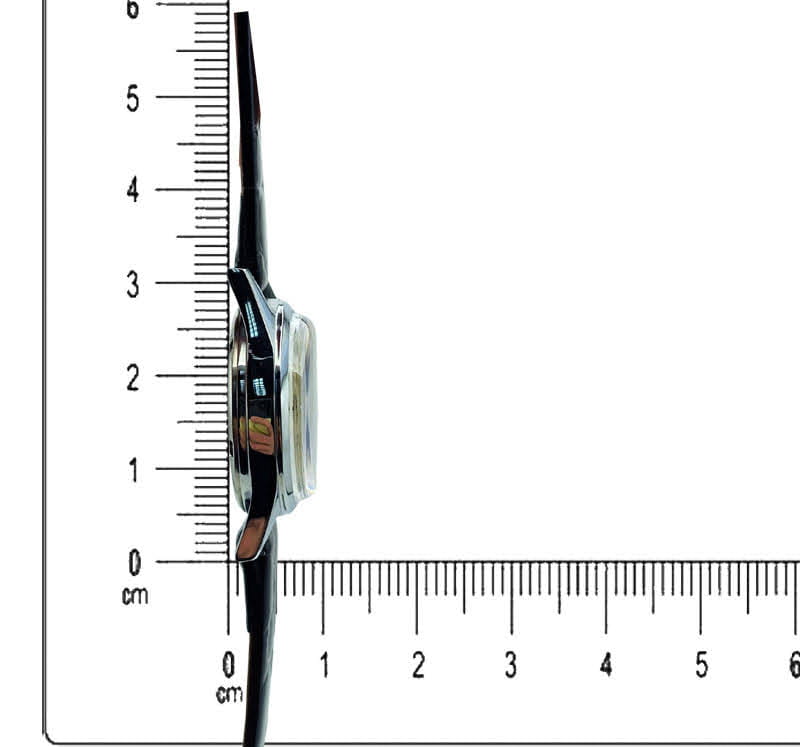 - Materiał: koperta chromowana na bazie mosiądzu – lekkie i praktyczne rozwiązanie stosowane w zegarkach epoki.