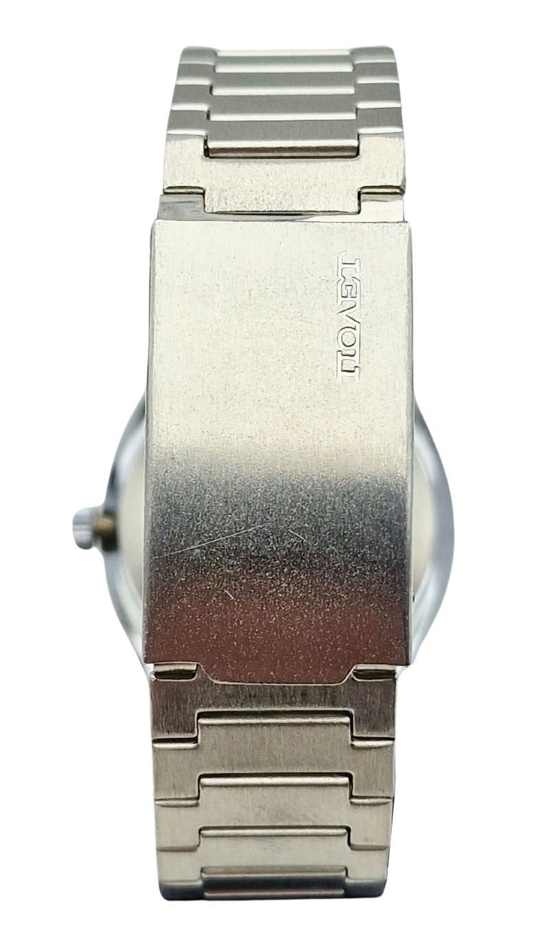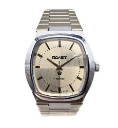 Prezentowany model Poljot z mechanizmem 2609.H to doskonały przykład radzieckiego wzornictwa użytkowego z lat 70. XX wieku. Wyróżnia się prostą, ale wyrazistą estetyką: od geometrycznej koperty typu „TV case”, po elegancko szczotkowaną tarczę i subtelne złocenia. To zegarek, który łączy funkcjonalność z charakterem epoki, będąc jednocześnie autentycznym świadectwem radzieckiej precyzji i masowej produkcji w służbie codzienności. Sygnatura „Сделано в СССР” na dole tarczy nie pozostawia wątpliwości co do pochodzenia i ducha tego egzemplarza.