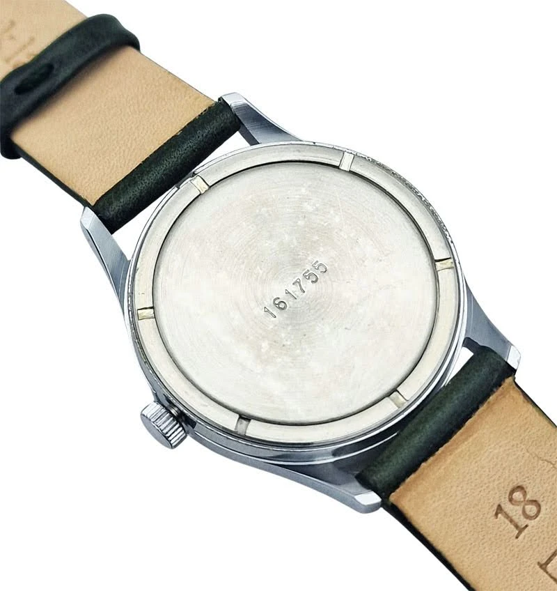 - Dekiel: dekiel wykonano ze stali i osadzono przy użyciu zakręcanego pierścienia, co jest rozwiązaniem charakterystycznym dla wielu zegarków z tego okresu. Taka konstrukcja zapewnia pewne i stabilne zamknięcie koperty.