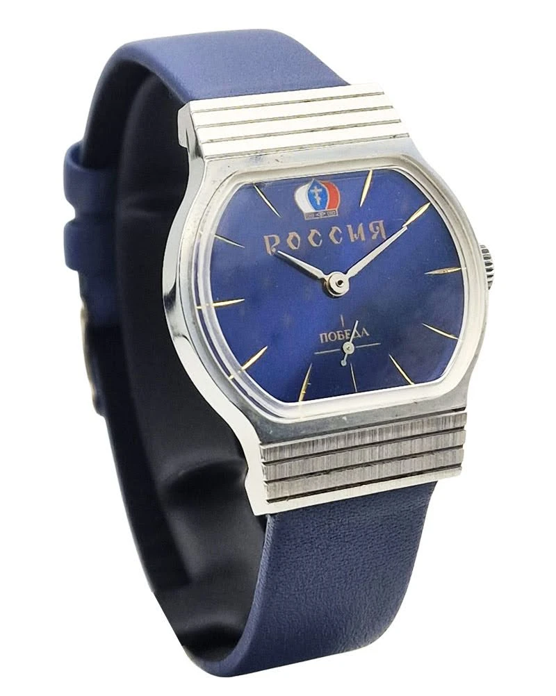 Zegarek marki Pobeda (Победа) został wyprodukowany w ZSRR i reprezentuje klasyczne radzieckie zegarmistrzostwo drugiej połowy XX wieku. Nazwa oznacza „Zwycięstwo” i była symbolem powojennej odbudowy przemysłu.