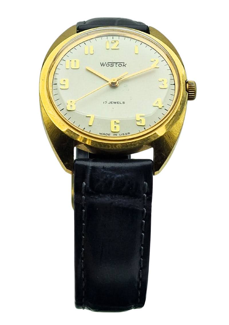 Zegarek pochodzi z Fabryki Zegarków Wostok w Czystopolu, jednej z najbardziej rozpoznawalnych manufaktur zegarmistrzowskich ZSRR. Marka ta zasłynęła z produkcji solidnych, wojskowych i cywilnych zegarków, które dzięki swojej niezawodności były eksportowane na cały świat. Model oznaczony symbolem „SU” i napisem „MADE IN USSR” to autentyczny wyrób radziecki, będący świadectwem epoki, w której zegarki Wostok uchodziły za jedne z najbardziej trwałych i praktycznych w codziennym użytkowaniu.