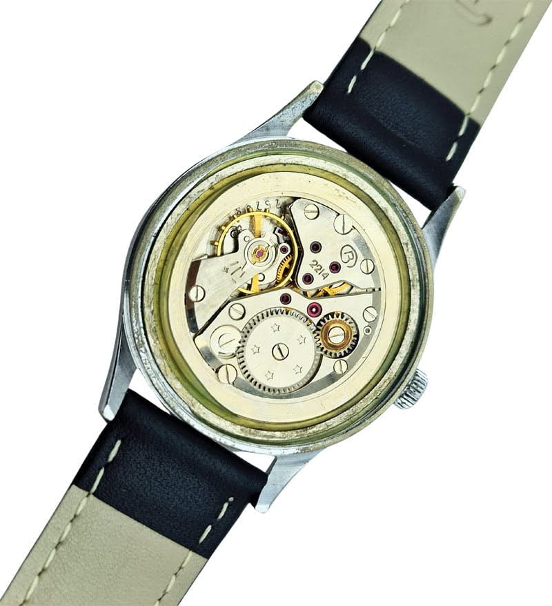 Mechanizm 2214 to ręcznie nakręcany werk wyposażony w 18 kamieni łożyskujących, produkowany w ZSRR w latach 70. Charakteryzuje się centralnym sekundnikiem z nietypowym, pośrednim napędem oraz datownikiem z funkcją szybkiej korekty przez cofanie wskazówek. Rezerwa chodu wynosi około 41 godzin, co zapewnia komfortowe użytkowanie przy codziennym noszeniu.
