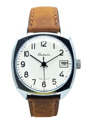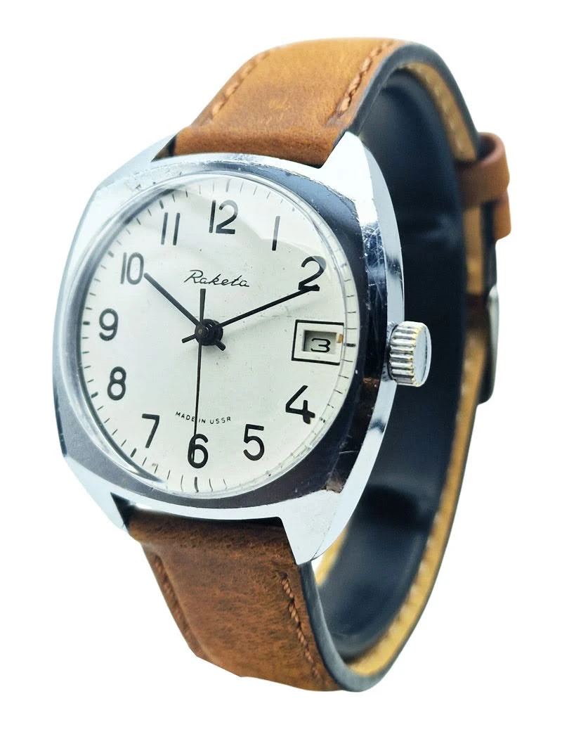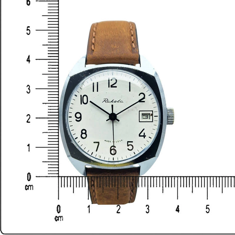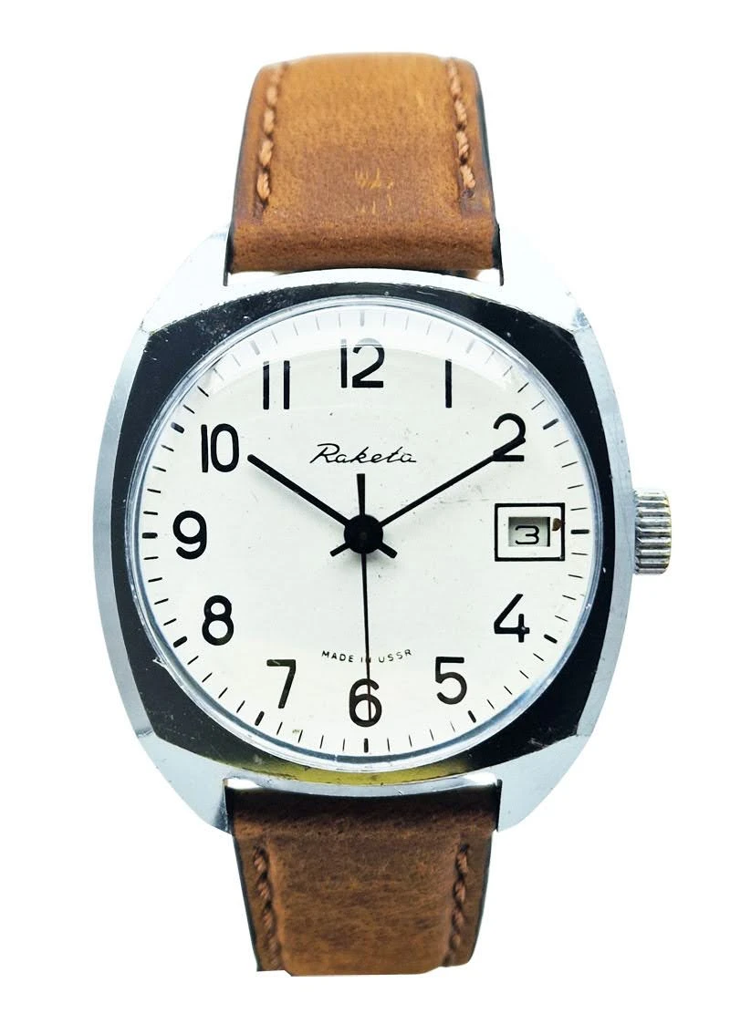 Męski zegarek mechaniczny Raketa, pochodzący z lat 70. XX wieku, to ikona wzornictwa z czasów ZSRR, potocznie nazywana przez kolekcjonerów „poduszką” ze względu na charakterystyczny kształt koperty. Ten egzemplarz stanowi rzadką okazję rynkową – zachował się w pełni oryginalnym stanie, bez niefachowych renowacji, łącząc surową, radziecką inżynierię z elegancką, minimalistyczną tarcza. Jest to czasomierz dla osób szukających autentyczności i niezawodności ukrytej w unikatowej, geometrycznej formie.