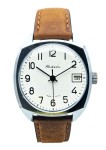 Zegarek wyposażono w nowy, brązowy pasek z naturalnej skóry o szerokości 18 mm. Przeszycia nicią w kolorze skóry podkreślają vintage'owy styl zestawu, a klasyczna klamerka zapewnia bezpieczeństwo i komfort noszenia przez cały dzień.