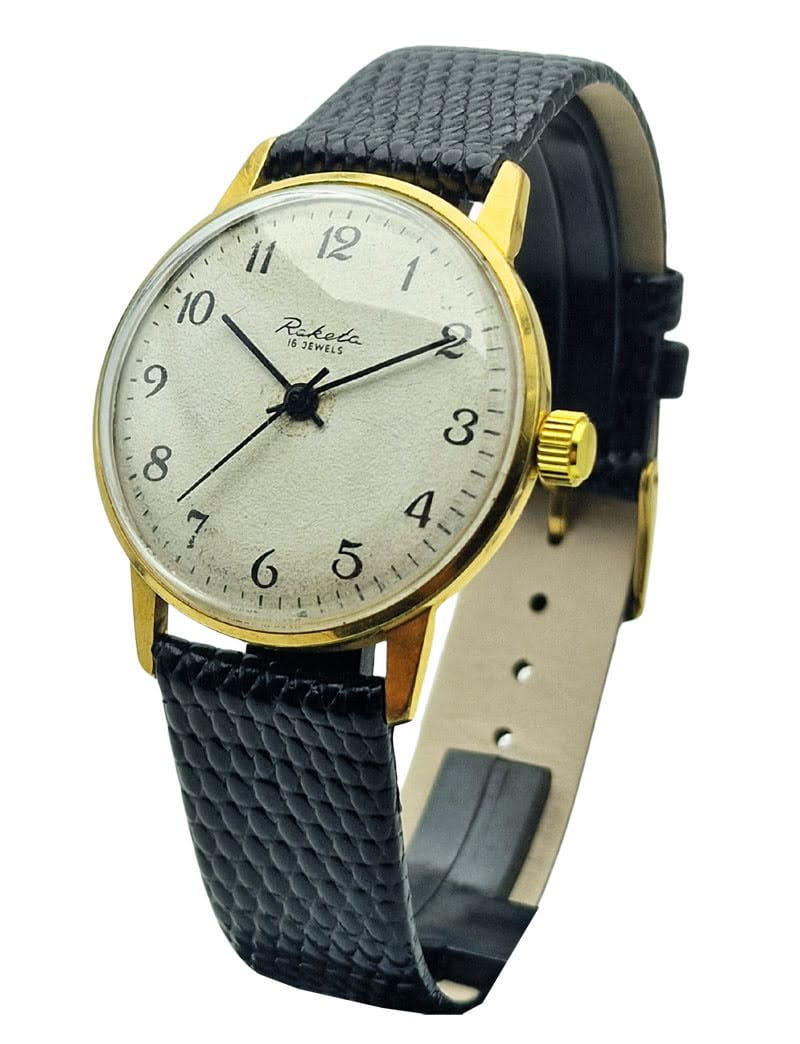Poznaj zegarek, który idealnie łączy historię, klasykę i niezawodną radziecką mechanikę. Raketa 16 Jewels z końca lat 60. to model, który zachwyca swoją prostą elegancją, czytelną białą tarczą i solidnym mechanizmem 2609, znanym z trwałości przez całe dekady. To doskonały wybór dla kolekcjonerów i miłośników zegarmistrzostwa, którzy szukają autentycznego egzemplarza z epoki - w pełni zgodnego z duchem tamtych lat.