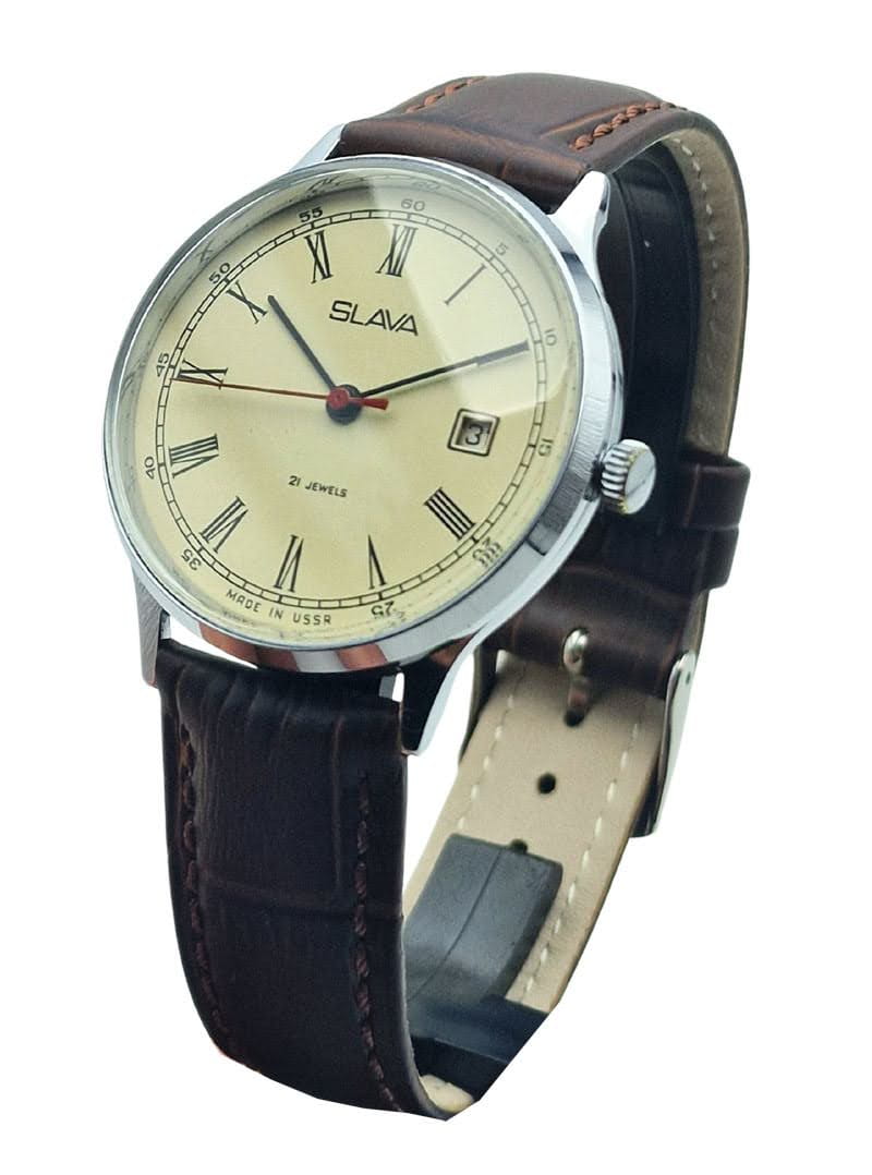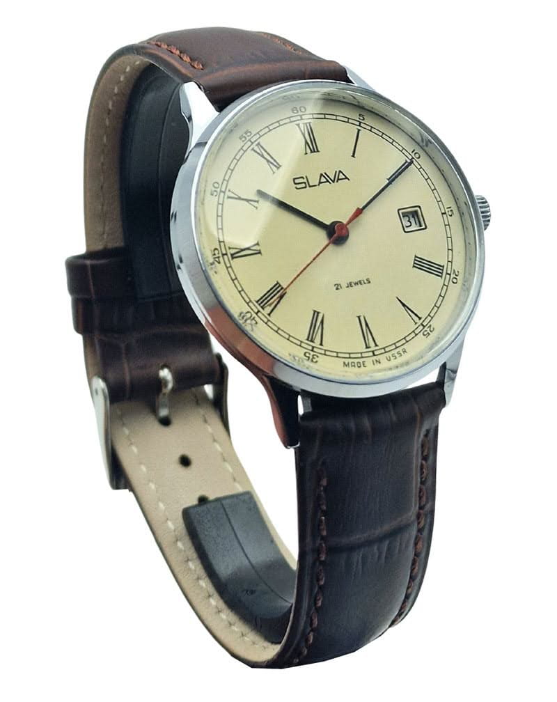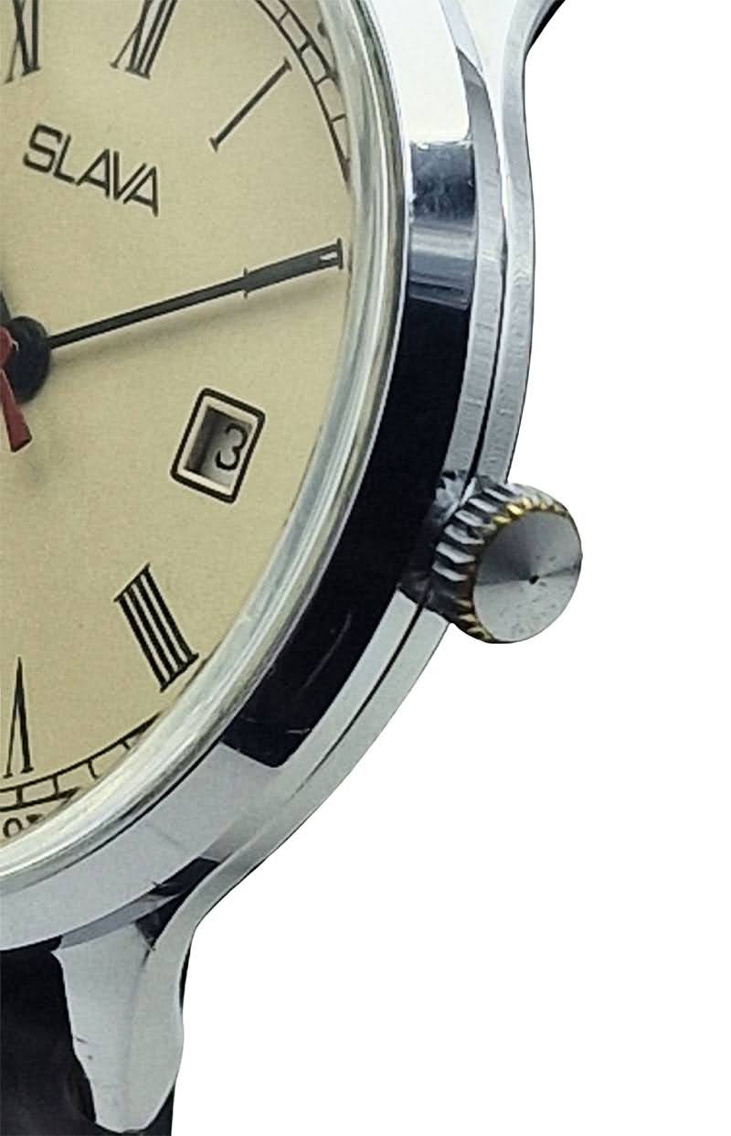 - Forma: klasyczny, ponadczasowy kształt typowy dla zegarków Slava z końca epoki ZSRR.