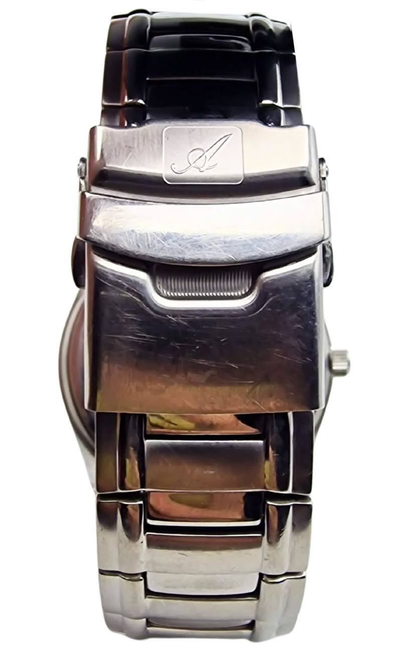 Koperta zegarka wykonana jest z wysokiej jakości stali nierdzewnej 316L, co zapewnia jej trwałość i odporność na codzienne użytkowanie. Jej średnica 40 mm i grubość 8 mm sprawiają, że zegarek prezentuje się elegancko i wygodnie układa się na nadgarstku. Całość uzupełnia sygnowany dekiel z logo producenta oraz koronka z inicjałem „A”, które podkreślają dbałość o detale i szwajcarski charakter modelu.