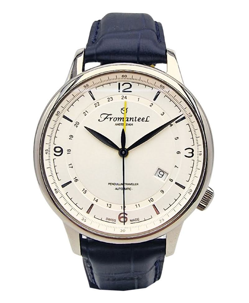 Fromanteel Pendulum Traveler PT-140-035 to elegancki zegarek męski, który łączy holenderski design z szwajcarską precyzją, oferując funkcję podwójnej strefy czasowej w przystępnej cenie. Zegarek sprzedawany z oryginalnym pudełkiem, kartą gwarancyjną i instrukcją. Nigdy nienoszony i nieużywany! Doskonałe uzupełnienie garderoby stylowego mężczyzny, okazja dla prawdziwego kolekcjonera oraz miłośnika czasomierzy!