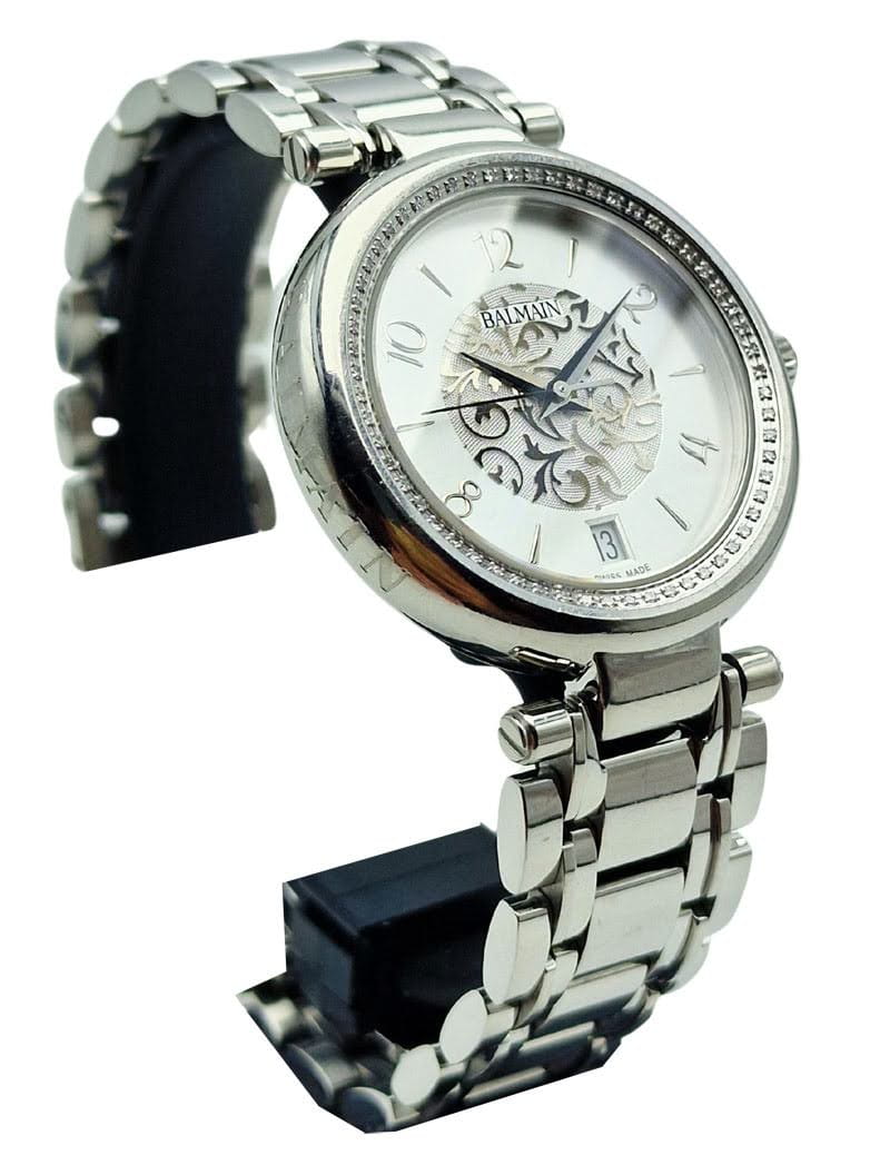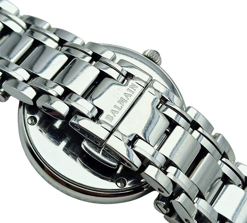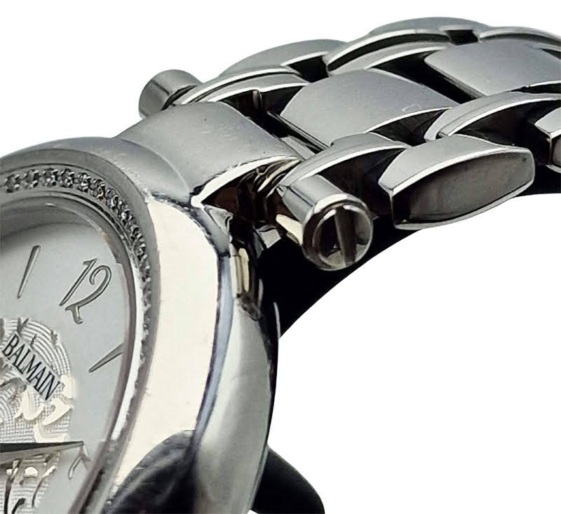 Bransoleta została wykonana z odpornej na korozję stali nierdzewnej, której polerowana powierzchnia nadaje całości elegancji i szyku. Wyposażona w zapięcie motylkowe sygnowane logo Balmain, zapewnia pewne trzymanie na nadgarstku i wygodę codziennego użytkowania. Jej wymiary to 18 mm szerokości przy kopercie oraz maksymalny obwód 17 cm, co czyni ją idealnie dopasowaną do damskiego nadgarstka.