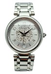 Tarcza zegarka Pierre Balmain utrzymana jest w eleganckiej, srebrzystej tonacji, którą zdobi finezyjny giloszowany ornament w centralnej części. Cyfry arabskie przeplatają się z subtelnymi indeksami liniowymi, tworząc harmonijną i czytelną kompozycję. Na godzinie 6 umieszczono praktyczne okienko datownika, które dodaje funkcjonalności bez zaburzania estetyki całości.