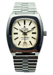 Zegarek pochodzi z okresu, w którym marka Cyma współpracowała z grupą Synchron, tworząc modele charakteryzujące się solidnymi mechanizmami A. Schild oraz wyrazistą estetyką lat 60. i 70. XX wieku. Produkcja odbywała się w Szwajcarii, a linia Conquistador była kierowana do klientów poszukujących eleganckich, funkcjonalnych automatów o wysokiej trwałości. Dzisiejsze egzemplarze stanowią interesujący fragment historii marki Cyma, pokazujący jej przejście przez okres reorganizacji i zmian technologicznych, co nadaje im dodatkową wartość kolekcjonerską.