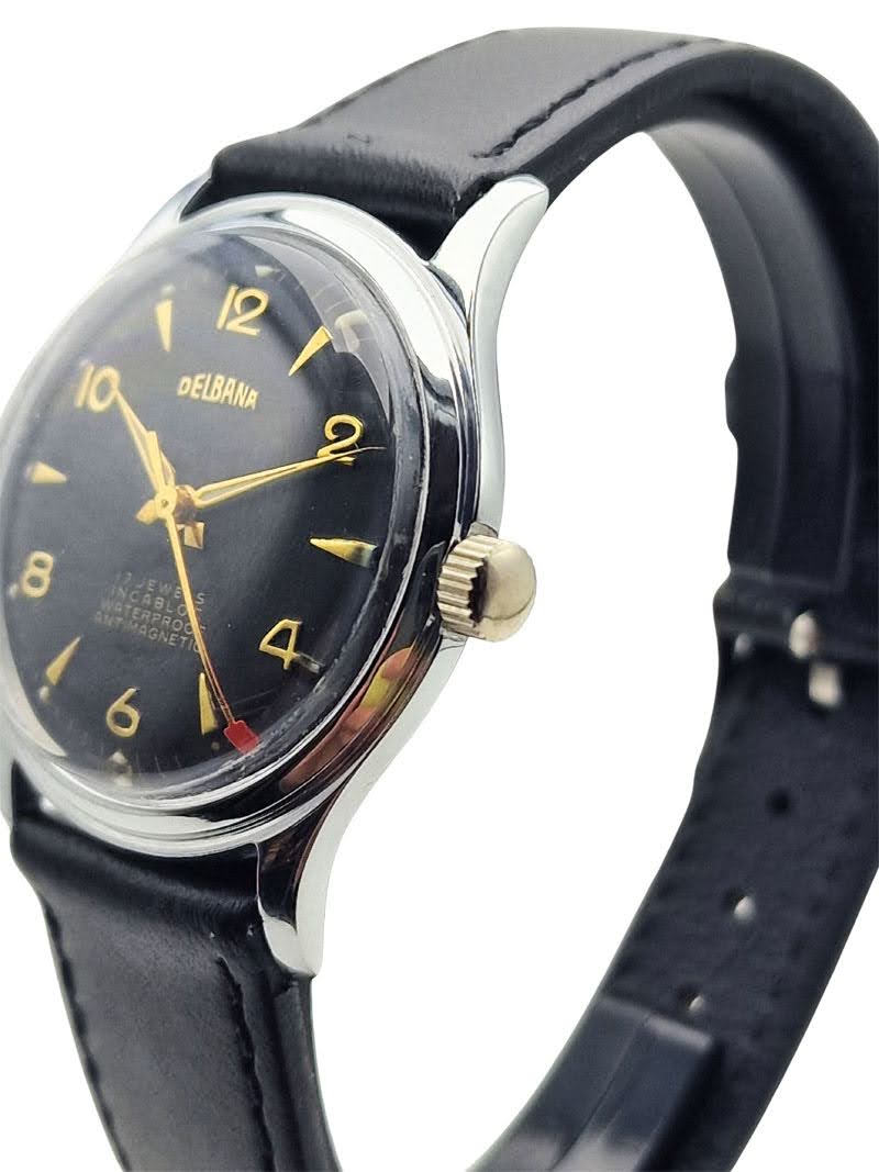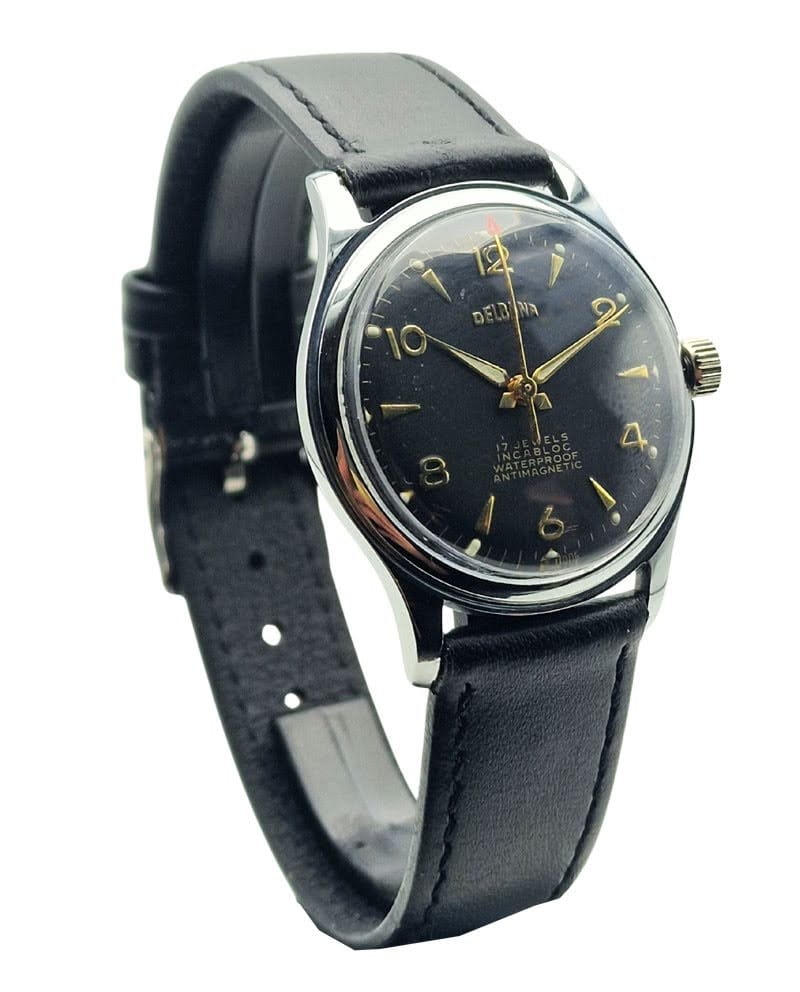 Delbana Black Gloss z lat 50. - czarna perła szwajcarskiego zegarmistrzostwa - unikatowy stan.