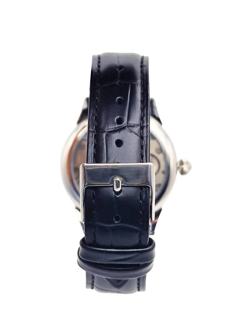 Zegarek zestawiono z nowym, luksusowym paskiem ze skóry naturalnej o szerokości 22 mm. Faktura imitująca skórę krokodyla w głębokiej czerni doskonale koresponduje z ciemnymi indeksami na tarczy. Solidna klamra zapewnia bezpieczeństwo, a standardowy rozmiar uszu pozwala na łatwą zmianę paska, by dopasować zegarek do aktualnego stroju.
