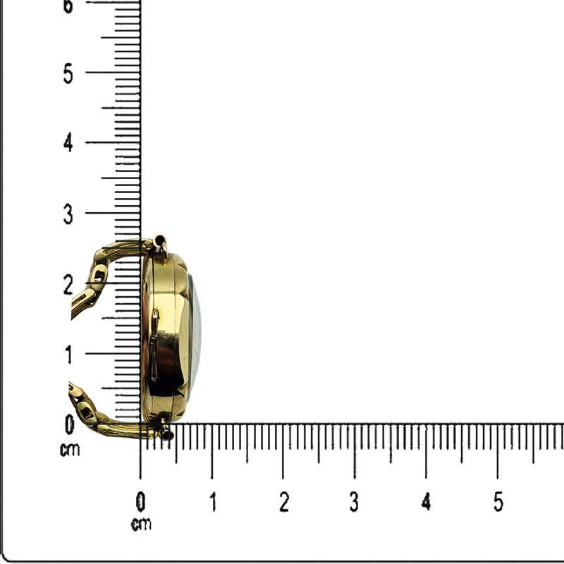 Koperta wykonana jest z pełnego złota próby 14K (0.585), co podkreśla jej szlachetny charakter oraz realną wartość materiałową, posiada klasyczny, okrągły kształt uzupełniony dekoracyjną, ząbkowaną lunetą nadającą jej wyrazisty wygląd, całość zachowuje smukłą i elegancką formę, dobrze współgrającą z biżuteryjnym charakterem zegarka.