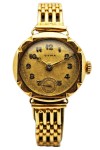 Wyjątkowy zegarek damski marki CYMA pochodzący z okresu Art Deco (lata 30.), wykonany w całości z litego złota 14K. Model ten wyróżnia się charakterystyczną, rzeźbioną lunetą oraz subtelną, biżuteryjną bransoletą, które nadają mu elegancki i ponadczasowy charakter. To klasyczny przykład szwajcarskiego zegarmistrzostwa, łączący funkcjonalność z formą jubilerską, zachowany w oryginalnej konfiguracji.