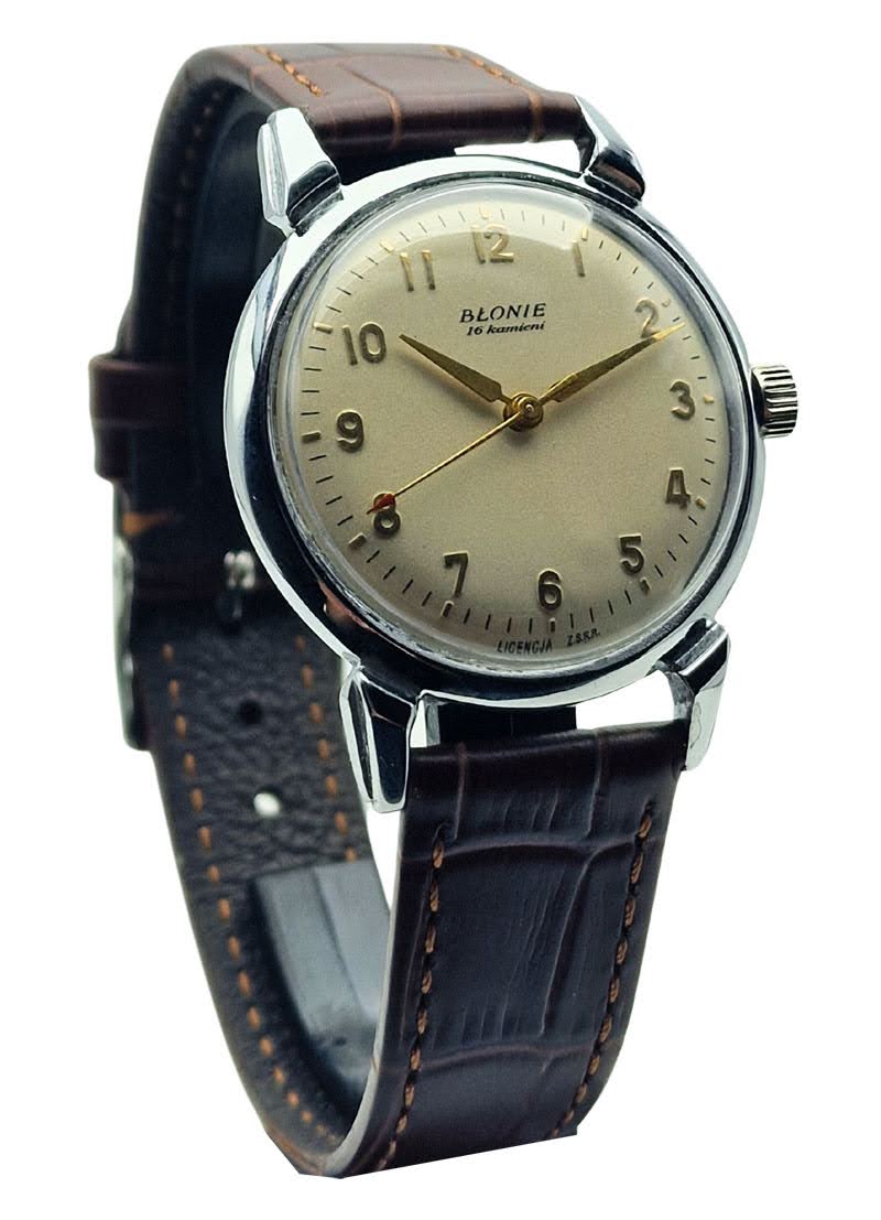 Ten zegarek to doskonała propozycja dla miłośników polskiego zegarmistrzostwa i kolekcjonerów poszukujących autentycznych modeli z duszą. Jego oryginalna srebrna tarcza, chromowana koperta i kultowy mechanizm МЧЗ 2409 tworzą harmonijną całość, która zachwyca elegancją i prostotą. To rzadki egzemplarz w świetnym stanie - idealny, by dodać do kolekcji prawdziwy fragment historii marki Błonie.⌚