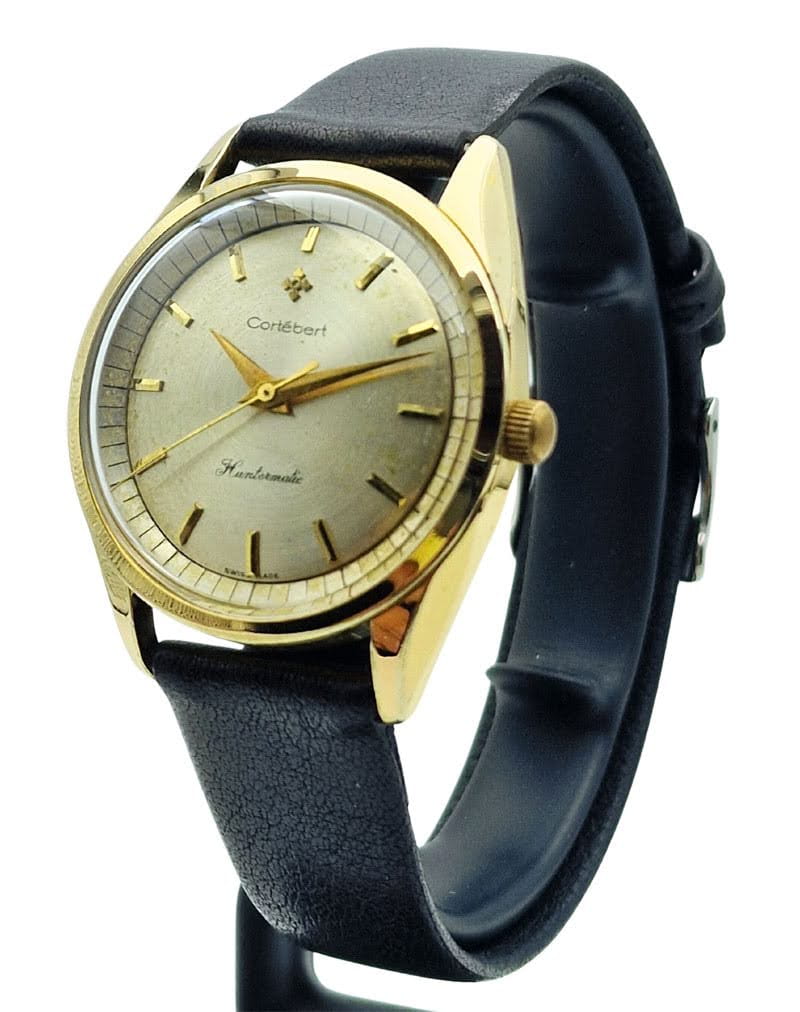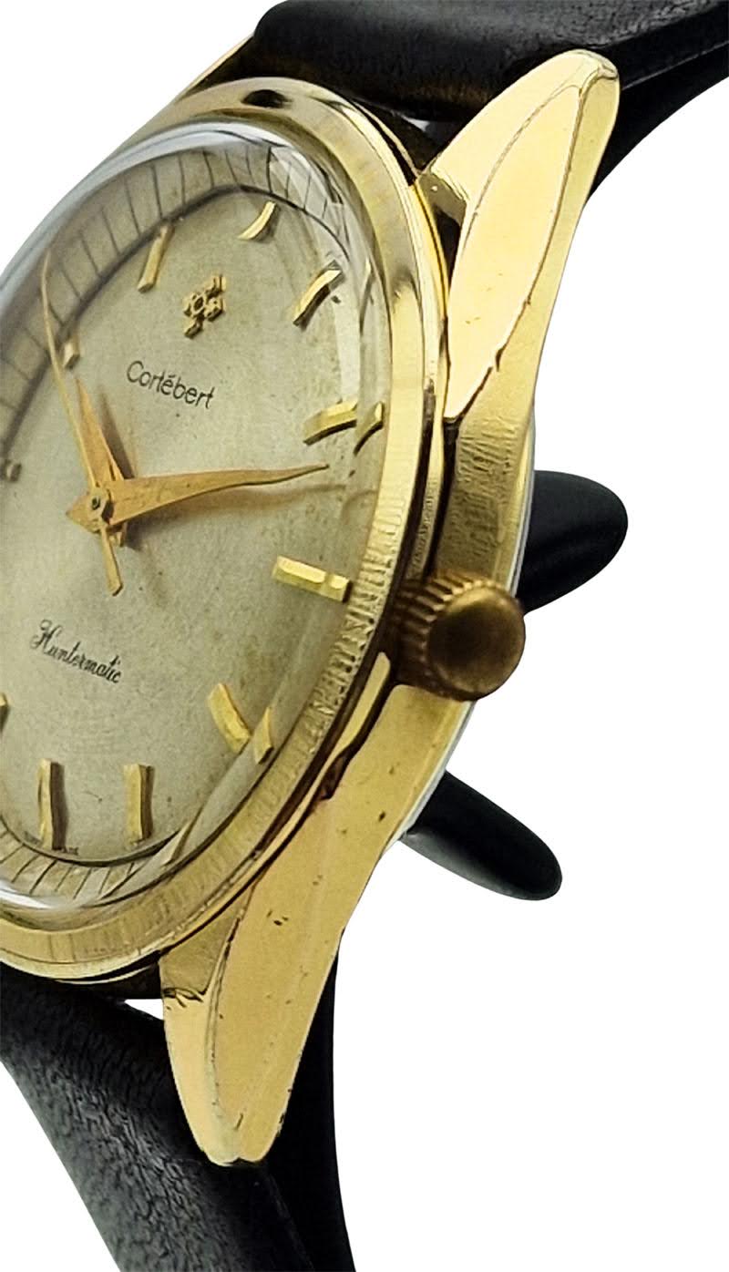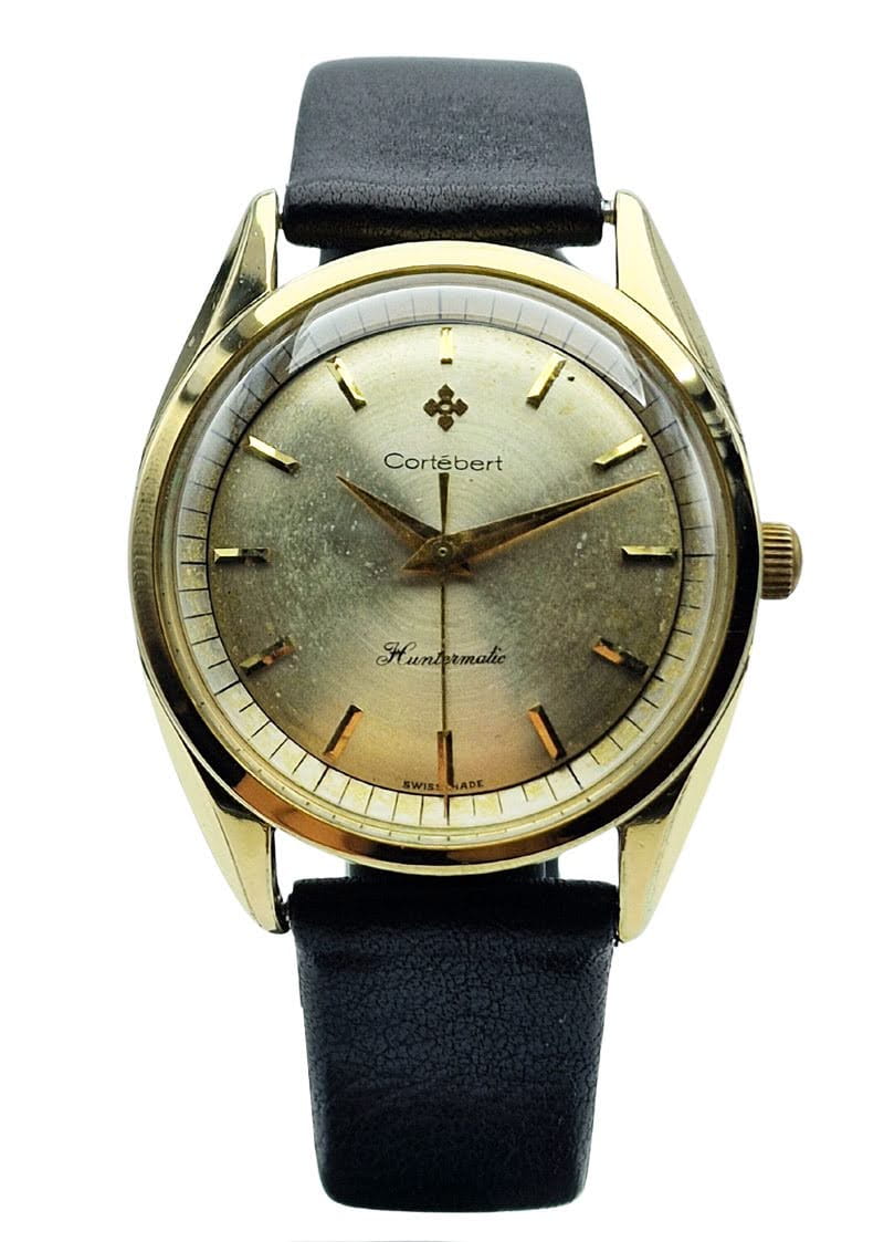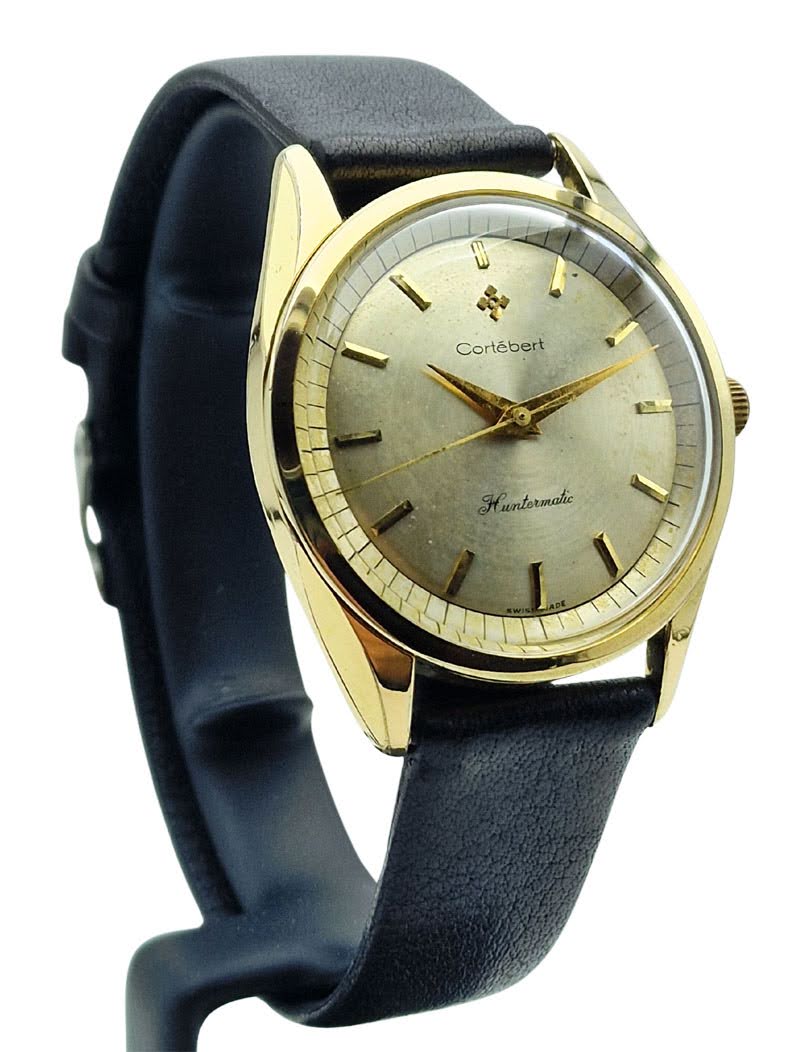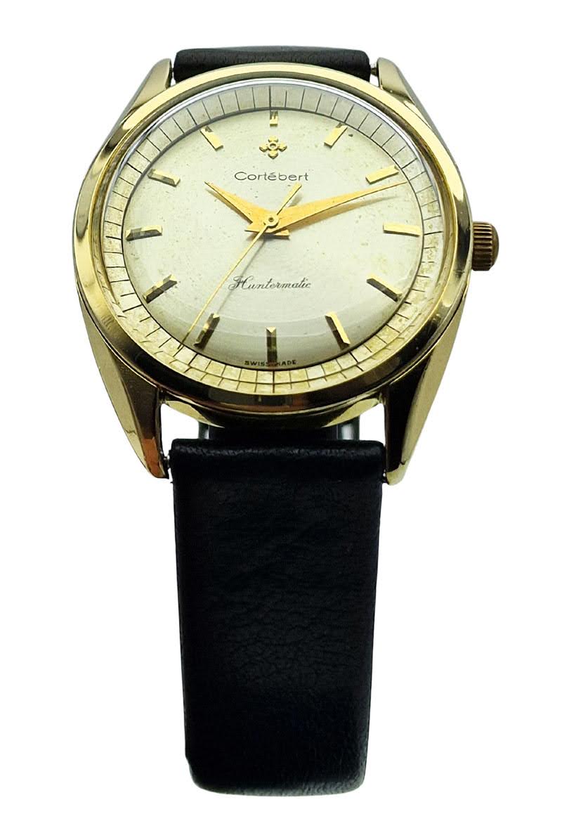 Cortebert Huntermatic pochodzi ze Szwajcarii i został wyprodukowany przez renomowaną markę Cortebert, działającą od 1790 roku. Firma zasłynęła jako jedna z nielicznych manufaktur tworzących własne mechanizmy, a model Huntermatic z końca lat 50. XX wieku był jej odpowiedzią na rosnącą popularność zegarków automatycznych. Choć marka zakończyła działalność w 1984 roku, jej zegarki zwłaszcza te z mechanizmami in-house - są dziś wysoko cenione przez kolekcjonerów na całym świecie.
