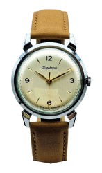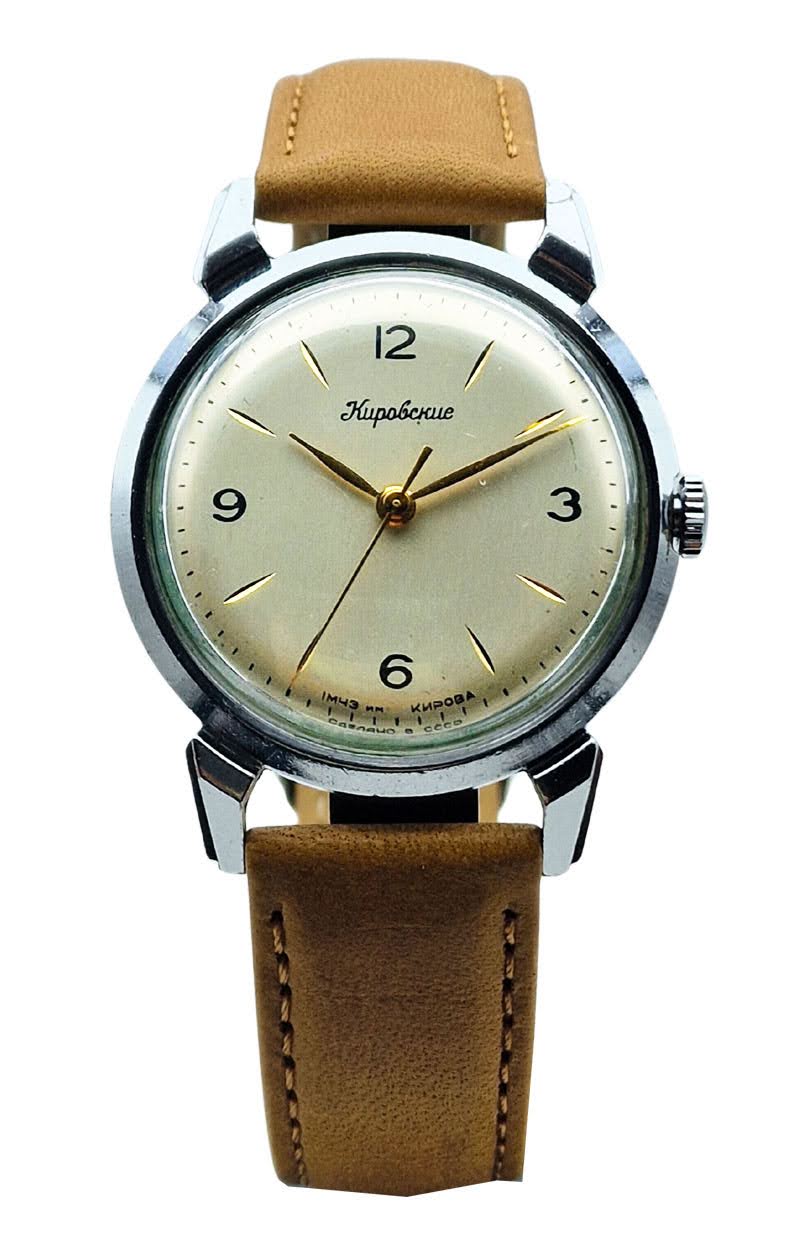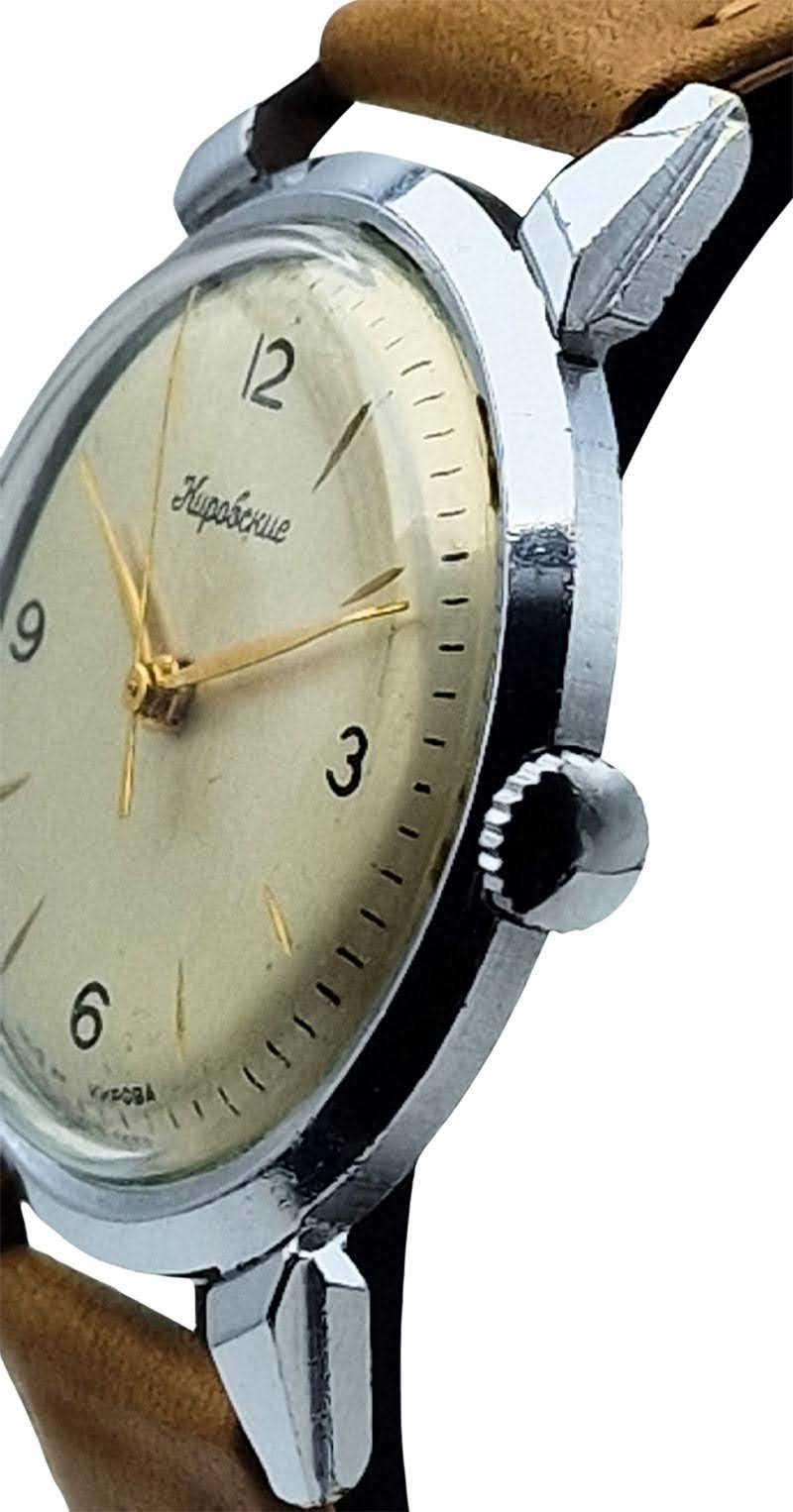 Zegarek Kirovskie Cal. 2408 to wyjątkowy przykład precyzyjnego rzemiosła radzieckiego okresu powojennego. Model ten łączy klasyczną formę koperty typu „krab” z subtelną elegancją minimalistycznej tarczy, charakterystycznej dla lat 60. XX wieku. Produkowany w Pierwszej Moskiewskiej Fabryce Zegarków im. Kirowa (1МЧЗ), reprezentuje ducha tamtej epoki - prostotę, funkcjonalność i solidność konstrukcji.