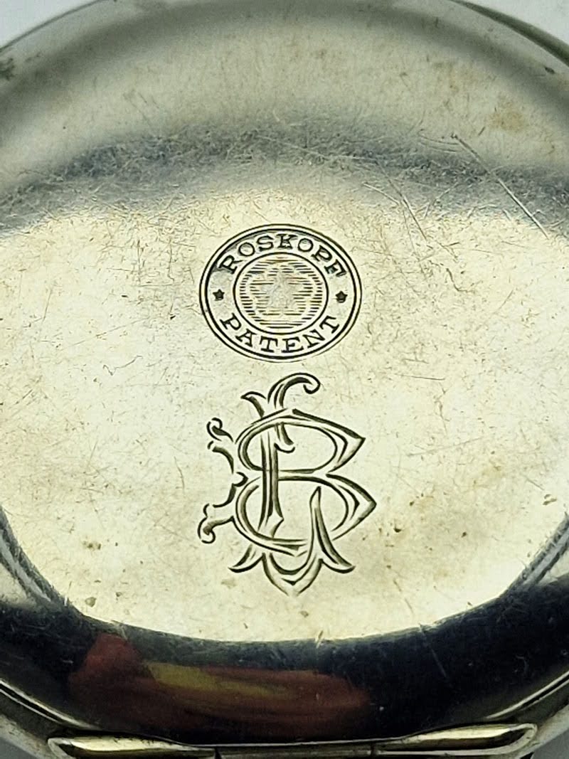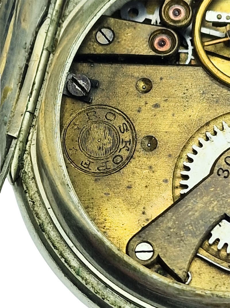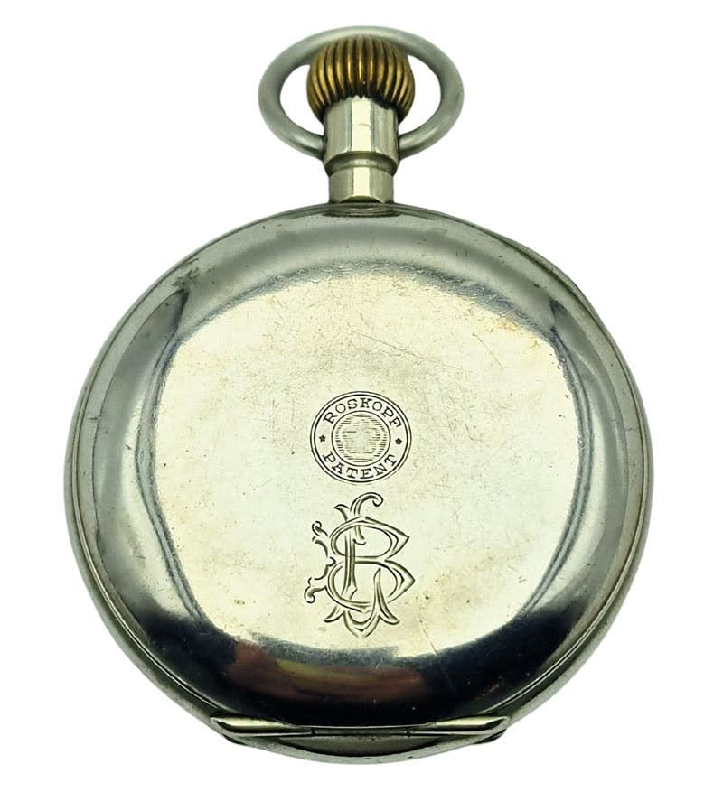 - Dekiel: stalowy, zawiasowy (hinged back), zdobiony tłoczonym napisem „Roskopf Patent” oraz numerem seryjnym - potwierdzającym autentyczność i pochodzenie egzemplarza.