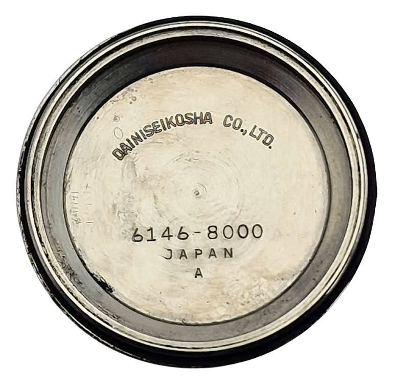 Prezentowany zegarek to klasyczny Seiko Automatic ref. 6146-8000 należący do rodziny automatów serii 61xx - jednych z najbardziej dopracowanych konstrukcji japońskiej marki z przełomu lat 60. i 70. Egzemplarz został wyprodukowany w lutym 1970 roku i wyposażony jest w mechanizm Seiko 6146A, pracujący na 25 kamieniach łożyskujących oraz z pełnym kalendarzem day-date. Charakterystycznym detalem jest jednak napis „17 JEWELS” umieszczony na tarczy, który na pierwszy rzut oka wydaje się niezgodny z konstrukcją werku. W rzeczywistości nie jest to błąd ani ślad wymiany części, lecz typowe dla epoki oznaczenie stosowane w egzemplarzach przeznaczonych na rynki eksportowe.