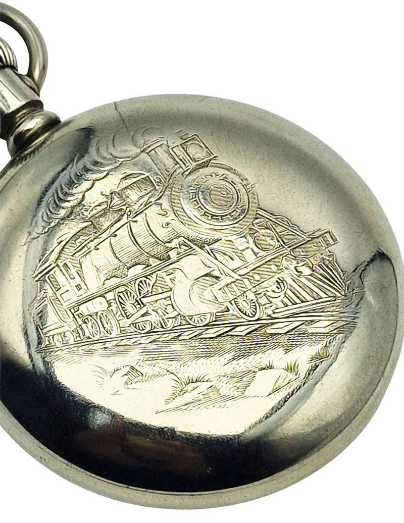 Waltham Pocket Watch 18s Model 1899 - koperta Silverode z lokomotywą!