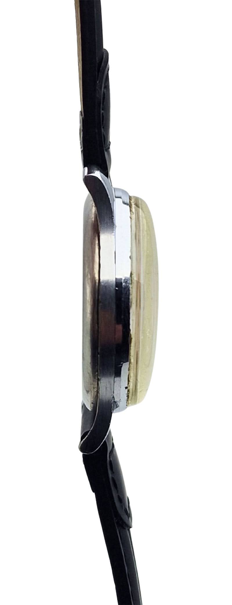 Zegarek dla mężczyzn. Dedykowany kolekcjonerom i pasjonatom historii, którzy poszukują przedmiotów w stanie nienaruszonym. Ze względu na swoje wymiary i klasyczną linię, będzie idealnym wyborem dla mężczyzny o tradycyjnym wyczuciu stylu, ceniącego subtelną elegancję i autentyczne dodatki z połowy ubiegłego wieku.