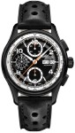 Czarny skórzany pasek z perforacją w stylu rajdowym. Nie tylko podkreśla sportowy charakter zegarka, ale także zapewnia wygodę użytkowania.