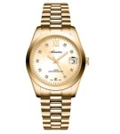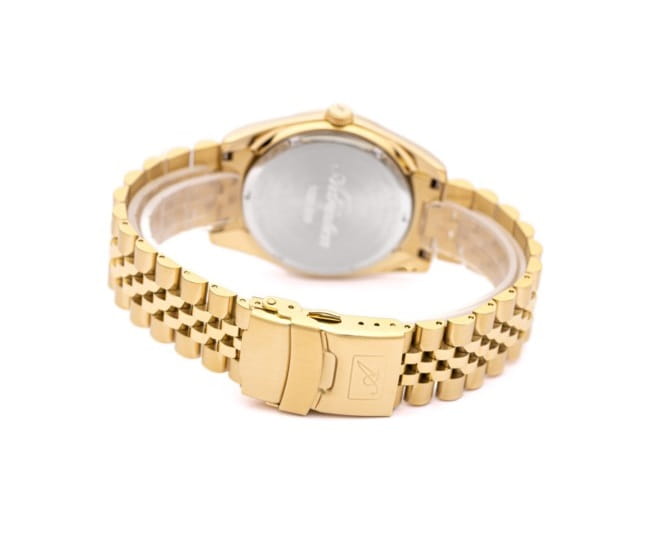 - Koperta i bransoleta ze stali nierdzewnej pokrytej powłoką PVD w kolorze złotym, odporne na korozję.