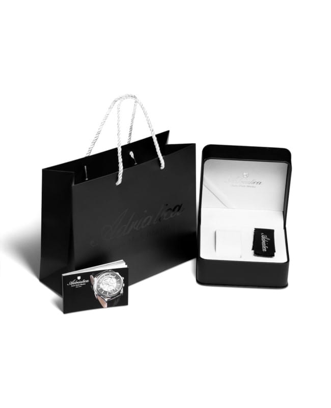 Zegarki ADRIATICA pakowane są w eleganckie, oryginalne pudełko, które podkreśla prestiż i klasę marki.W zestawie znajdują się wszystkie niezbędne dokumenty, takie jak karta gwarancyjna oraz certyfikat autentyczności, co gwarantuje oryginalność produktu.