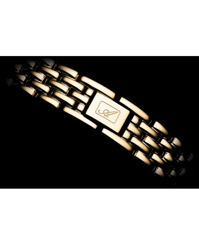 Zegarek wyposażono w bransoletę o szerokości 14 mm wykonaną ze stali szlachetnej pokrytej powłoką PVD w kolorze żółtego złota. Jej elegancki połysk świetnie komponuje się z resztą zegarka i zapewnia wysoki komfort noszenia.