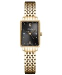 Koperta o wymiarach 22 mm x 29 mm została wykonana ze stali szlachetnej pokrytej złotem PVD, co zapewnia trwałość i luksusowy wygląd. Prostokątny kształt podkreśla klasyczny, biżuteryjny charakter modelu.