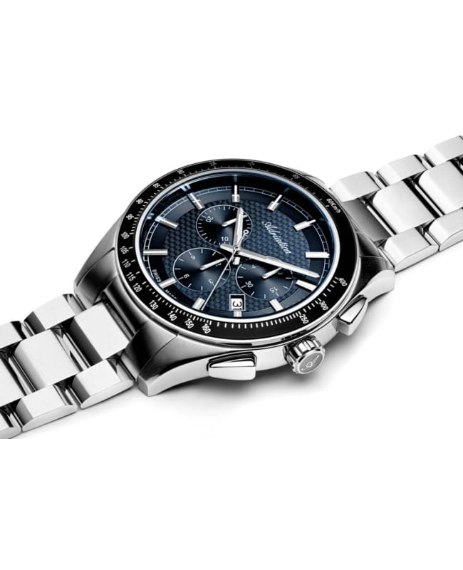 Chronograf i datownik, zwiększające użyteczność zegarka.