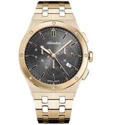 Adriatica A8337.1117CH to elegancki męski zegarek, który łączy klasyczny design z nowoczesną funkcjonalnością. Koperta o średnicy 42 mm i grubości 11 mm wykonana jest z wysokiej jakości stali szlachetnej w kolorze złotym, co nadaje mu luksusowy charakter. Czarna tarcza, chroniona szkiełkiem szafirowym odpornym na zarysowania, zapewnia doskonałą czytelność dzięki wyrazistym indeksom i wskazówkom.Zegarek wyposażony jest w precyzyjny szwajcarski mechanizm kwarcowy Ronda 5030, gwarantujący niezawodne odmierzanie czasu. Funkcja chronografu umożliwia dokładne pomiary, a datownik umieszczony na tarczy informuje o aktualnym dniu miesiąca. Bransoleta ze stali szlachetnej w kolorze złotym doskonale komponuje się z kopertą, zapewniając komfort noszenia i trwałość.