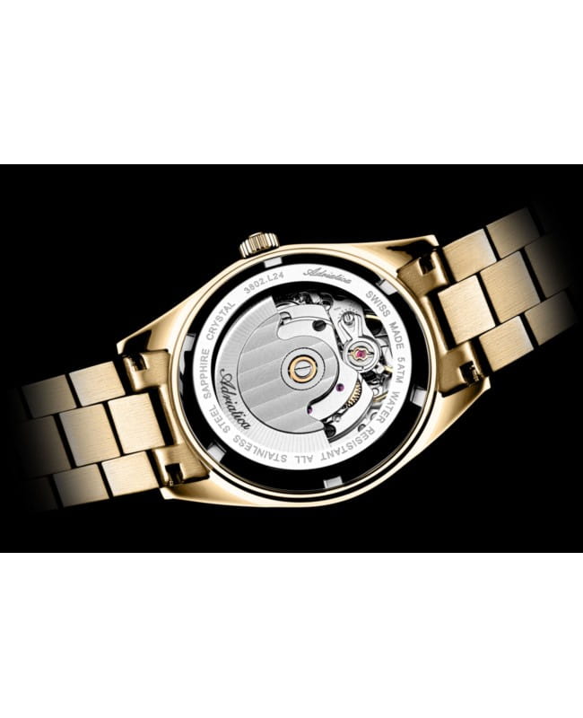 Model A3802.1111AD wyposażony jest w szwajcarski mechanizm automatyczny Landeron L24 z 25 kamieniami łożyskującymi. Działa bez potrzeby baterii, opierając się na energii kinetycznej wytwarzanej przez ruch nadgarstka. To niezawodne rozwiązanie dla kobiet ceniących tradycję zegarmistrzowską i bezobsługowe użytkowanie.
