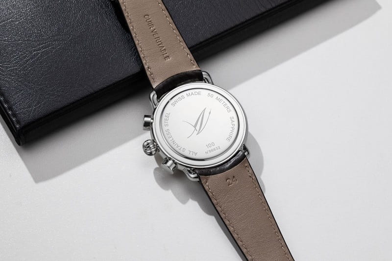 Zegarek posiada szwajcarski mechanizm kwarcowy zapewniający bardzo dokładną pracę. Szczelność zegarka na poziomie 5 atm (50M) pozwala na swobodne użytkowanie zegarka podczas codziennych zajęć, nie należy jednak w zegarku pływać. Całość zamocowana jest na solidnym skórzanym pasku w kolorze brązowym.
