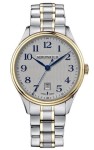 Srebrno-złota koperta zegarka o średnicy 31 mm wykonana jest z wysokiej jakości stali szlachetnej. Srebrna tarcza z cyframi arabskimi nadaje zegarkowi klasyczny charakter. Model ten wyposażony jest również w funkcję datownika umieszczoną na godzinie 6. Aerowatch Les Grandes Classiques A 49101 BI05 M posiada szkło szafirowe, które jest odporne na zarysowania i zapewnia doskonałą czytelność tarczy nawet po wielu latach użytkowania. Zegarek ten posiada także bransoletę stalową w kolorze srebrno-złotym, co dodaje mu wyrafinowanego charakteru i wygody noszenia. Główne zalety produktu: - Elegancki design z cyframi arabskimi