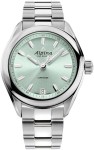Alpina Comtesse AL-240LGR2C6B Alpina Comtesse AL-240LGR2C6B to elegancki zegarek damski, który łączy w sobie klasykę z nowoczesnością. Wyposażony w precyzyjny mechanizm kwarcowy AL-240, ten model zapewnia długą żywotność baterii wynoszącą aż 45 miesięcy. Koperta zegarka o średnicy 34 mm i grubości 9,5 mm wykonana jest z polerowanej i szczotkowanej stali nierdzewnej, co zapewnia trwałość i elegancki wygląd. Szkiełko jest wykonane z szafirowego szkła z powłoką antyrefleksyjną, co chroni tarczę przed zarysowaniami i zapewnia doskonałą widoczność. Zegarek posiada zieloną tarczę z wykończeniem sunray, która nadaje mu eleganckiego charakteru. Na tarczy znajdują się srebrne indeksy oraz polerowane wskazówki wypełnione białą luminescencją, co zapewnia czytelność w każdych warunkach oświetleniowych. Zegarek jest również wyposażony w datownik umieszczony na godzinie 6. Cechy szczególne: