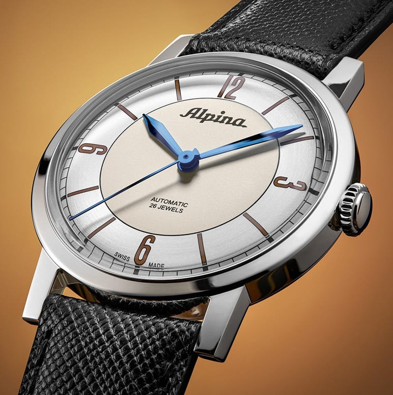 Alpina to szwajcarska marka zegarmistrzowska z tradycjami, znana z linii Startimer inspirowanej lotnictwem. W referencji AL-520SBG3SH6 zastosowano automatyczny kaliber AL-520 (26 kamieni, 4 Hz), tarczę sektorową w tonacji beige/silver oraz „box” szafir z powłoką antyrefleksyjną. Koperta 38 mm pozostaje wierna historycznym proporcjom i wygodzie noszenia.