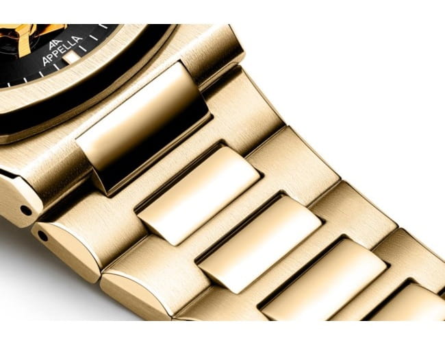 Model Appella L12006.1114AS wyposażono w bransoletę stalową w kolorze złotym, która znakomicie uzupełnia całość projektu. Bransoleta jest solidna i wygodna w noszeniu, a dzięki precyzyjnemu wykonaniu świetnie dopasowuje się do nadgarstka. Zapięcie motylkowe gwarantuje komfort i bezpieczeństwo codziennego użytkowania. To rozwiązanie, które łączy trwałość z elegancją i dodaje zegarkowi klasycznego charakteru. Bransoleta sprawia, że zegarek wygląda spójnie i luksusowo.