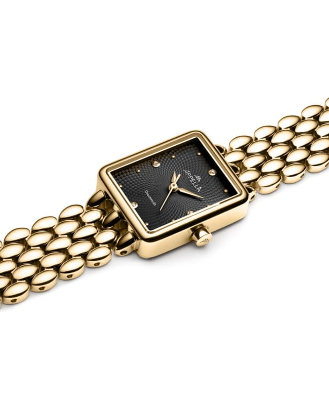 Appella Diamonds L50032.1146DQ – złoto czarna elegancja Swiss Made z diamentami na tarczy.