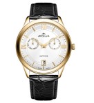 Appella L70014.1263QF Zegarek męski Appella L70014.1263QF łączy w sobie elegancję i funkcjonalność, idealnie pasując do współczesnych potrzeb. Zegarek posiada wysokiej jakości stalową kopertę pokryte powłoką PVD w kolorze żółtego złota wykonaną oraz srebrną tarczę, która dodaje mu klasycznego i stylowego wyglądu. Model ten napędzany jest szwajcarskim mechanizmem kwarcowym Ronda X20, który zapewnia niezawodność i precyzję. Zegarek jest wyposażony w szkło szafirowe, odporne na zarysowania, co zapewnia długotrwałą ochronę i doskonałą czytelność tarczy. Detal który ma znaczenie Dzięki wielofunkcyjnym wskaźnikom na tarczy, zegarek pozwala na wygodne korzystanie z dodatkowych funkcji, takich jak datownik. Pasek wykonany z wysokiej jakości skóry z zapięciem motylkowym zapewnia komfort noszenia i elegancki wygląd. Cechy szczególne: