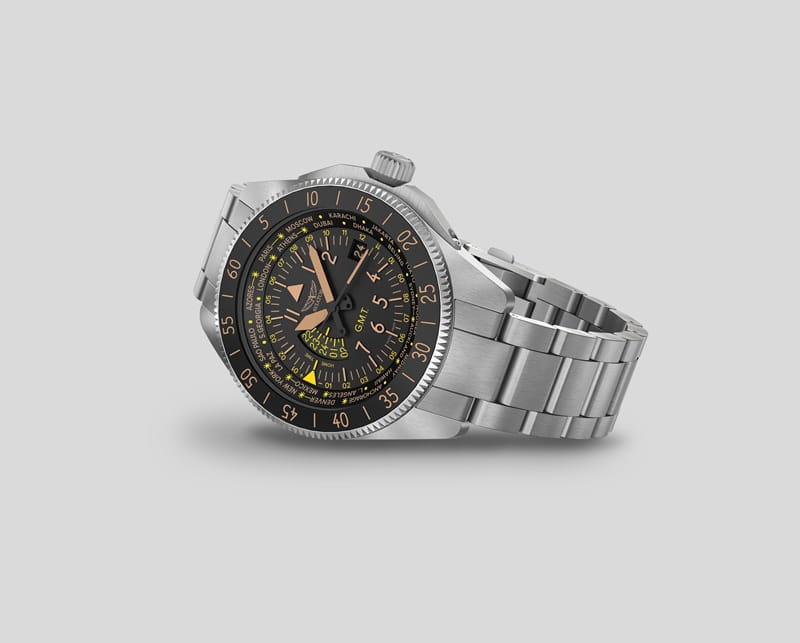 To precyzyjny zegarek dla podróżników i miłośników awiacji. Łączy czytelną, kontrastową tarczę z praktycznym wskazaniem drugiej strefy czasowej oraz solidną, stalową konstrukcją odporną na codzienne użytkowanie.