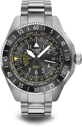 To precyzyjny zegarek dla podróżników i miłośników awiacji. Łączy czytelną, kontrastową tarczę z praktycznym wskazaniem drugiej strefy czasowej oraz solidną, stalową konstrukcją odporną na codzienne użytkowanie.