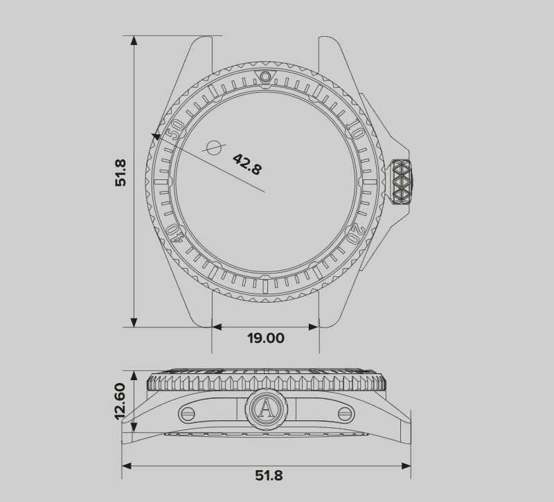 Stalowa koperta o średnicy 43 mm zapewnia solidność i odporność mechaniczną. Jednokierunkowy bezel umożliwia kontrolę czasu nurkowania. Zakręcana koronka poprawia szczelność konstrukcji. Koperta została zaprojektowana do intensywnego użytkowania, wykonana z wysokiej jakości stali szlachetnej 316L.